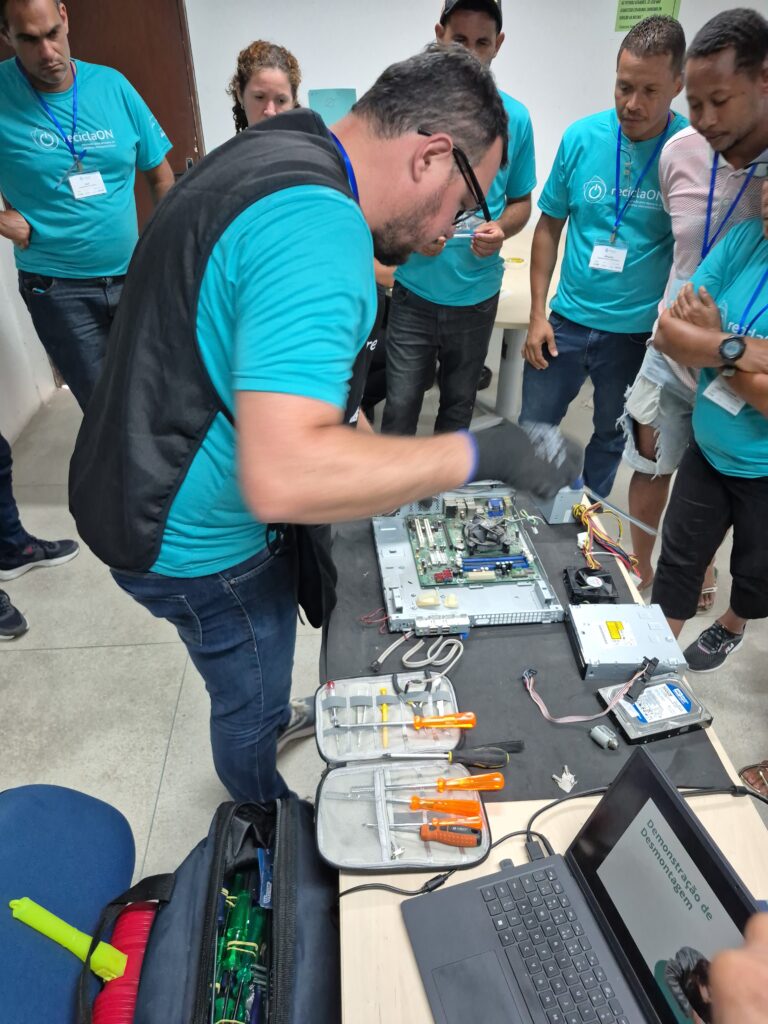 “Aprendemos que resíduos eletroeletrônicos têm muitas vantagens pela qualidade dos itens que compõem um equipamento. O ReciclaON nos ensina a lidar com o material e a definir as peças a serem vendidas individualmente. Até agora, não sabíamos sequer como desmontar um computador, muito menos fazer a administração do negócio e a reaproveitar as peças, por isso são cursos importantes”, fala Vânia Maria da Silva, da Cooreplast, que tem 21 anos de existência.