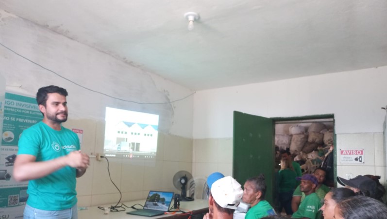 As ações do ReciclaON não param de ensinar e capacitar cooperativas. Desta vez, os técnicos do Instituto gea – Ética e Meio Ambiente, estiveram presentes em Maceió (AL), para uma série de palestras sobre a contaminação por meio de Resíduos Eletroeletrônicos. Por conta disso, a necessidade de explicar e ilustrar de forma prática aos catadores como agir em situações cotidianas.